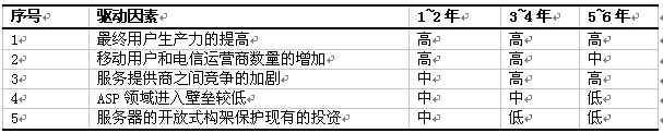 下表顯示了ASP統(tǒng)一信息服務(wù)市場(chǎng)的驅(qū)動(dòng)因素