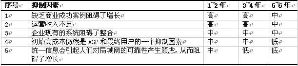 下表顯示了ASP統(tǒng)一信息服務(wù)市場(chǎng)的抑制因素