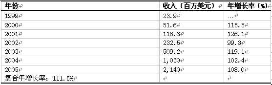 下表及下圖,顯示了Frost & Sullivan 公司預(yù)測(cè)1999年到2005年整個(gè)歐洲ASP統(tǒng)一信息產(chǎn)品市場(chǎng)收入增長(zhǎng)及增長(zhǎng)率情況。