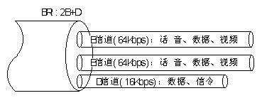 ◆基本速率接口(BRI:Basic Rate Interface),該速率由兩個承載信道和一個數(shù)據(jù)控制信道構成,稱為2B+D,其中B(Bearer)為標準PCM速率64kbps,D(Data)為16kbps。該速率適用于家用或小型企業(yè)需要。