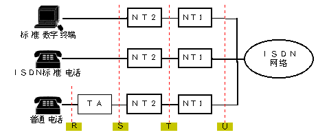 R參考點:位于非標準ISDN設備(TE2)和TA間;
