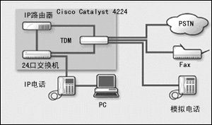 Catalyst 4224結(jié)合了24端口快速以太網(wǎng)交換機(jī)的功能,即利用Catalyst 2600/3600分支機(jī)構(gòu)路由器、8端口模擬語(yǔ)音網(wǎng)關(guān)和縮小的AVVID呼叫管理器等為IP電話(huà)提供線(xiàn)路供電能力。所有的部件都集中在一個(gè)2U的機(jī)柜內(nèi),它還具有硬件加速的VPN和防火墻的性能。