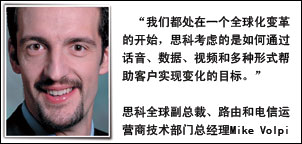 所有的運(yùn)營商都處在一個(gè)全球化變革的開始,思科的機(jī)會(huì)是通過話音、數(shù)據(jù)、視頻的多種形式幫助客戶實(shí)現(xiàn)變化的目標(biāo)。