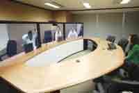 10月24日,在思科公司位于香港灣仔鷹君大廈的一間會(huì)議室,包括思科CEO錢伯斯在內(nèi)的六名高管已經(jīng)“坐”在橢圓型的會(huì)議桌一側(cè)!癏i!”隨著錢伯斯的一聲招呼,會(huì)議室內(nèi)的人這才發(fā)現(xiàn),正在講話的“錢伯斯”是在三塊連接起來的等離子屏幕上,而此刻他真實(shí)的位置是在思科位于美國硅谷的總部。65英寸的1080P高清晰屏幕上,錢伯斯等人的影像如真人大小,加上三塊屏幕被設(shè)計(jì)成會(huì)議桌的另外一半,讓人誤以為錢伯斯真的來到了香港。