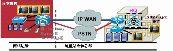 思科集成多業(yè)務(wù)平臺(tái)是企業(yè)分支機(jī)構(gòu)和商業(yè)機(jī)構(gòu)部署帶SRST的IP電話、用于故障恢復(fù)呼叫處理的基礎(chǔ)。在此部署中,語(yǔ)音留言和自動(dòng)接聽服務(wù)可在思科集成多業(yè)務(wù)路由器中通過Cisco