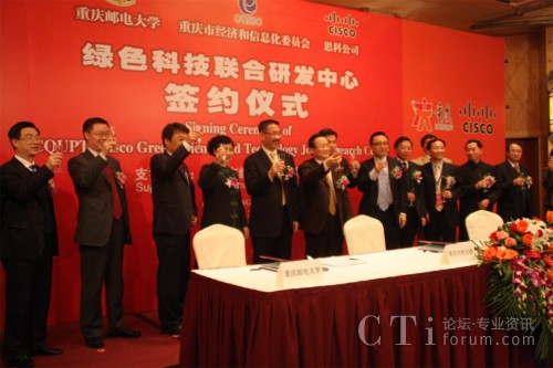 CTI論壇(ctiforum)2月3日消息(記者 潘婷):2月3日上午,思科公司與重慶郵電大學(xué)正式簽訂合作協(xié)議,共建“重慶郵電大學(xué)-思科綠色科技聯(lián)合研究實驗室”!熬G色科技聯(lián)合研究實驗室”的成立是思科履行其致力于推動中國創(chuàng)新和可持續(xù)發(fā)展承諾的重要舉措。此次合作中雙方將共同推動下一代互聯(lián)網(wǎng)、傳感器網(wǎng)絡(luò)以及綠色科技等領(lǐng)域的研發(fā),推進應(yīng)用推廣和產(chǎn)業(yè)化發(fā)展,實現(xiàn)產(chǎn)學(xué)研一體化,幫助和支持重慶本土企業(yè)提高綠色科技創(chuàng)新的素質(zhì)和能力,進而支持中國發(fā)展綠色經(jīng)濟、節(jié)能減排的長期戰(zhàn)略。