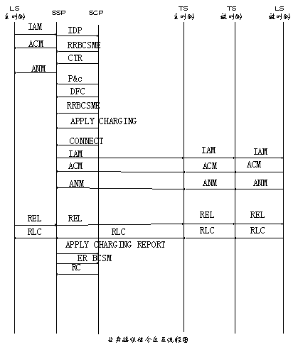 ⑥ SSP按照SCP返回的被叫號碼及路由信息,與被叫側(cè)TS、LS局進行IAM、ACM和ANM(應答消息)等ISUP信令交互;