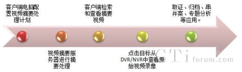 新太視頻摘要比對系統(tǒng)(SUNTEK-VSCS)基于尖端的圖像/視頻理解與圖像搜索技術,通過對海量視頻錄像的智能分析,提取出錄像中的運動分量,并進行視頻內(nèi)容的整合壓縮,使監(jiān)控人員能在很短的時間內(nèi)通過視頻摘要了解監(jiān)控區(qū)域發(fā)生的事件;系統(tǒng)同時可通過目標的特征進行搜索比對,快速定位車輛、人員或其它物體等目標,并提取回放特定目標的錄像內(nèi)容。通過該系統(tǒng)可節(jié)約大量的時間與精力,解決人工查看整個視頻流所帶來的困擾。