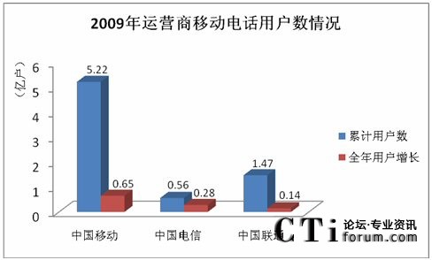 截至2009年12月31日,國(guó)內(nèi)移動(dòng)電話用戶累計(jì)達(dá)到74738.4萬(wàn)戶,中國(guó)移動(dòng)的用戶總數(shù)已達(dá)到5.22億戶,累計(jì)客戶凈增長(zhǎng)6503.3萬(wàn)戶,在三大運(yùn)營(yíng)商中,中國(guó)移動(dòng)的用戶保有量和每月新增用戶數(shù)份額仍然最大。