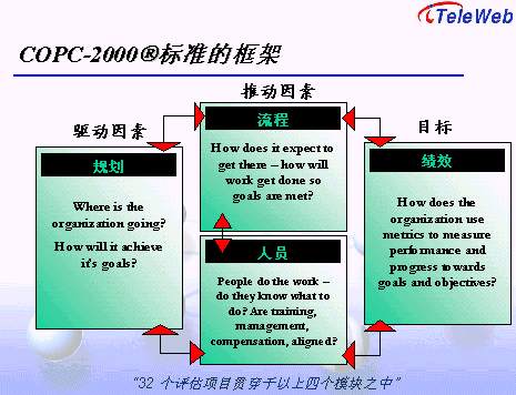 COPC-2000®標準提供呼叫中心規(guī)劃與領(lǐng)導(dǎo)、流程管理、人員管理、績效考核四大類32項指標的評估基準,內(nèi)容涵蓋財務(wù)成本、客戶滿意度、客戶投訴、服務(wù)與質(zhì)量、組織結(jié)構(gòu)、人力資源運用、員工考核及士氣等呼叫中心管理的所有方面。具體架構(gòu)見下圖。