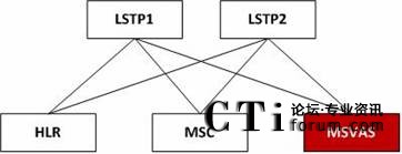 MSVAS平臺(tái)可以通過七號(hào)信令網(wǎng)與移動(dòng)核心網(wǎng)中的各個(gè)網(wǎng)元進(jìn)行對接,如與七號(hào)信令網(wǎng)中的LSTP進(jìn)行對接,通過ISUP、TUP以及MAP對核心網(wǎng)中HLR、MSC、短信中心等網(wǎng)元進(jìn)行訪問,實(shí)現(xiàn)移動(dòng)管理(位置查詢)、呼叫處理(主要是獲取路由信息)、業(yè)務(wù)登記、短消息業(yè)務(wù)等功能,其連接方式如下圖所示: