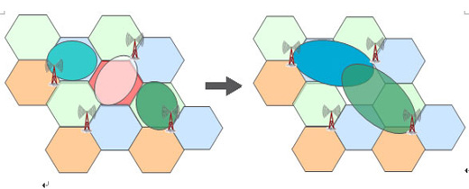 一旦出現(xiàn)退服,OSS會(huì)協(xié)調(diào)問(wèn)題基站周邊基站的扇區(qū)來(lái)補(bǔ)償退服的無(wú)線覆蓋。如下圖,參與補(bǔ)償?shù)幕緯?huì)調(diào)整下行發(fā)射功率、天線傾角等來(lái)補(bǔ)償退服區(qū)域,甚至調(diào)低上行信號(hào)接收門(mén)限變相地?cái)U(kuò)大該扇區(qū)覆蓋以接入更多退服區(qū)域的終端。當(dāng)然,由于扇區(qū)的調(diào)整,會(huì)造成鄰區(qū)關(guān)系變化、切換邊界變化、干擾增加,這些就需要OSS提供的其他功能ANR、MRO、ICIC來(lái)聯(lián)合優(yōu)化。