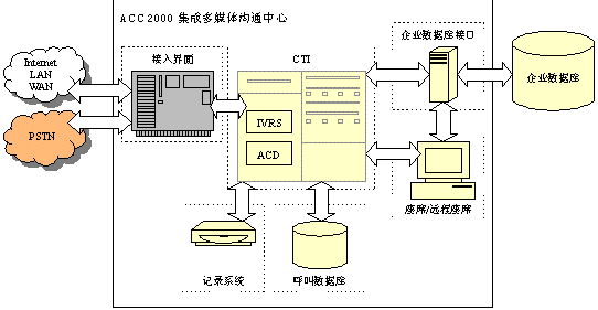 圖3 ACC2000集成多媒體溝通中心基本框架