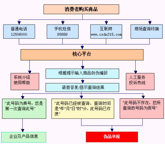 在國家計(jì)委和國務(wù)院信息辦的直接領(lǐng)導(dǎo)下,以及在質(zhì)檢、工商、醫(yī)藥等職能部門的配合下,國家信息中心正式啟動國家級防偽工程 -- 數(shù)碼防偽公共服務(wù)系統(tǒng)建設(shè)。該系統(tǒng)綜合利用了當(dāng)前最先進(jìn)的技術(shù),集CTI技術(shù)、語音技術(shù)、網(wǎng)絡(luò)通信技術(shù)、計(jì)算機(jī)加密技術(shù)、以及大型數(shù)據(jù)庫技術(shù)于一體,服務(wù)于產(chǎn)品防偽和打假,支持企業(yè)采用現(xiàn)代信息技術(shù)開展防偽工作,提高防偽效能,并為廣大消費(fèi)者提供安全和質(zhì)量的保障。