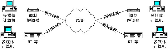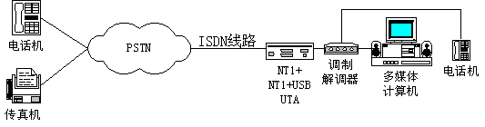 采用ISDN數(shù)字線路時(shí),實(shí)現(xiàn)PSTN電話語音方式的連接圖如下: