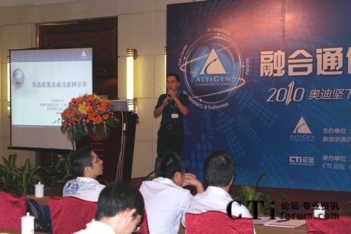 CTI論壇(ctiforum)9月10日消息(記者 楊毅):2010年9月9日奧迪堅在廣州市嘉鴻華美達廣場酒店舉辦的“下一代融合通信平臺華南研討會” 圓滿落下帷幕。本次會議以 “融合通信” 為主題,將最新的由“IPT、IPCC、UC和Mobility”四個部分組成的融合通信技術完美呈現(xiàn)在嘉賓眼前,吸引了業(yè)界眾多知名廠商和媒體,并得到了奧迪堅在各個行業(yè)的新老客戶的積極響應和參與。通過奧迪堅的精彩主題演講、現(xiàn)場的情景秀表演和眾多案例分享等多種形式,與合作伙伴及嘉賓共同探討融合通信技術該如何發(fā)展、解讀渠道新政策、同時更加深入了解奧迪堅產(chǎn)品,提高合作伙伴在市場上的競爭力。CTI論壇(www.efortunetech.com)獨家承辦此次會議,并進行全程報道。