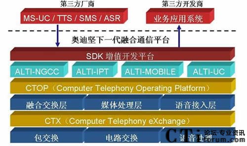 目前隨著軟交換的不斷發(fā)展,軟交換的架構(gòu)越來越適用于語音交換和呼叫中心系統(tǒng)平臺, 并且其整合新技術(shù),新功能的能力也越來越強大,因此奧迪堅在去年推出了下一代融合通信平臺解決方案。