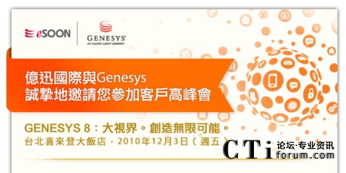 持續(xù)優(yōu)化企業(yè)績效及培養(yǎng)意見領袖,都是協(xié)助我們在臺灣的用戶與其客戶有更佳交流往來的重要作法,因此,我們特別籌辦了‘客戶高峰會’,全面邀集來自Genesys新加坡、香港及中國的專家和同儕與您面對面,進行互動的知識分享與意見交換。