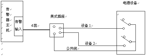 本告警器后面板有兩個告警輸入接口,通過四蕊電話線與設(shè)備相連。一臺主機可收集五種告警。連接距離可達(dá)5公里。