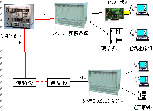 ·DAS120與交換平臺采用E1連接,信令為隨路信令CAS。