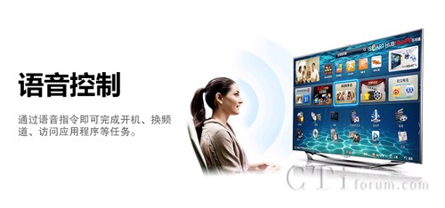 消費者不僅能使用自然語指令切換頻道、搜索在線內容、訪問三星Smart Hub,還可以通過Skype與朋友和家人交流。用戶僅需說一聲“Hi TV(你好,電視),開機”,便能打開電視。