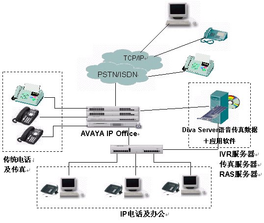 針對現(xiàn)代企業(yè)辦公通信的特點和要求,Avaya與Eicon經(jīng)過嚴格的產(chǎn)品互操作測試,及應(yīng)用調(diào)試共同推出了企業(yè)一體化辦公平臺解決方案,該解決方案整合了兩家公司的交換機、語音傳真板卡的各自優(yōu)勢,既可以應(yīng)用于傳統(tǒng)的網(wǎng)絡(luò)環(huán)境,又能應(yīng)用于純IP的通信環(huán)境,將不同的應(yīng)用技術(shù)和網(wǎng)絡(luò)結(jié)合起來,做到真正的辦公一體化。