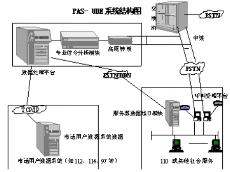 為了滿足各類(lèi)社會(huì)應(yīng)急與服務(wù)呼叫系統(tǒng)對(duì)電話用戶資料的需要,同時(shí)又解決電信部門(mén)對(duì)用戶資料數(shù)據(jù)庫(kù)的保密和安全要求,我公司成功開(kāi)發(fā)了PAS-UDE(User Data Extract)電話信息回送系統(tǒng),并成為110聯(lián)網(wǎng)接口設(shè)備開(kāi)發(fā)生產(chǎn)入網(wǎng)廠商。