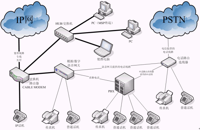 。1) 通過話務(wù)代理商,通過個(gè)人上網(wǎng)寬帶,選擇安裝1線媒體語音網(wǎng)關(guān)、IP電話機(jī)或軟電話(MSP),完成了全部開通工程。