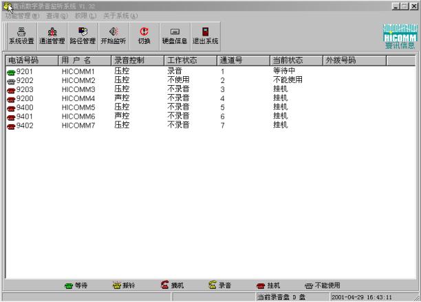 系統(tǒng)管理員根據(jù)權(quán)限可以對系統(tǒng)的任一路電話進(jìn)行監(jiān)聽,此時被監(jiān)聽的說話雙方絲毫不會有所察覺,