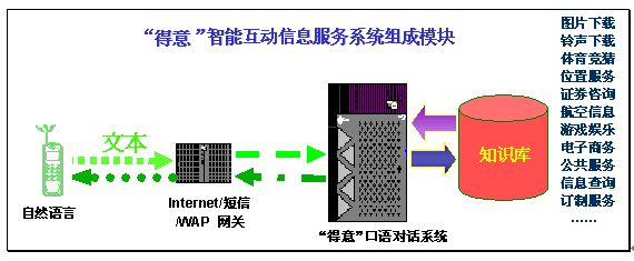"得意口語對話系統(tǒng)"可以充分滿足互聯(lián)網、短信、WAP等業(yè)務的智能互動信息服務需求,為SP和用戶提供了更易用、好用、實用的信息交流平臺。