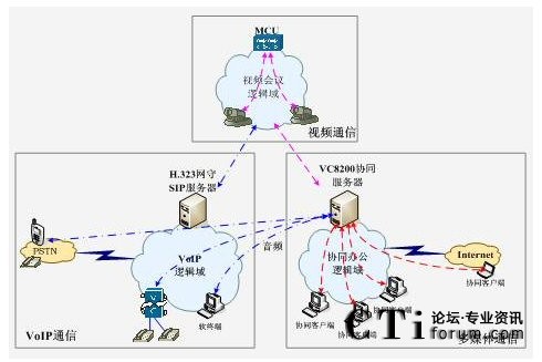 強大的系統(tǒng)融合能力:可以與傳統(tǒng)H.323的電視電話會議系統(tǒng)互通,以較低的成本把電視電話會議的音視頻延伸至基層;還可以與傳統(tǒng)的IP電話網融合,使用戶通過PSTN電話也能訪問協(xié)同服務器,隨時隨地實現(xiàn)音頻參加會議。