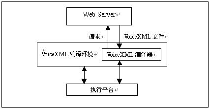 通過上圖可以看出,用戶根據(jù)自己的業(yè)務(wù)需求和流程書寫VoiceXML格式的文件,對(duì)于需要從數(shù)據(jù)庫和其他系統(tǒng)獲取的數(shù)據(jù),可以使用Web Scripts(ASP,JSP等)語言訪問外部系統(tǒng)以獲取數(shù)據(jù),把這些數(shù)據(jù)合并到VXML的模板中,形成完整的業(yè)務(wù)流程。IVR服務(wù)器負(fù)責(zé)解析和執(zhí)行這些自動(dòng)語音頁面,完成相應(yīng)的語音業(yè)務(wù)。