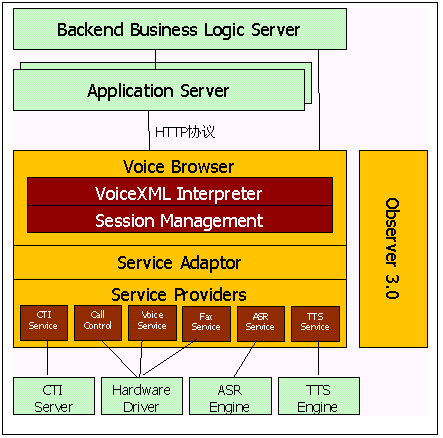 聲軟技術(shù)的VoiceServer是集VoiceXML解析環(huán)境、VoiceXML解析器和執(zhí)行平臺(tái)為一體的通用語音平臺(tái),在這基礎(chǔ)上增加了CTI中間件和TAPI/WAV等方面的技術(shù)支持,使它不僅能作為一個(gè)獨(dú)立的語音應(yīng)答系統(tǒng)使用,而且可以作為呼叫中心理想的IVR服務(wù)器,并且可以作為外撥服務(wù)器、傳真服務(wù)器、語音門戶網(wǎng)站系統(tǒng)使用,是一個(gè)具用國際先進(jìn)水平的綜合性語音平臺(tái);所有的可選功能模塊通過獨(dú)有的Plug-in技術(shù)可實(shí)現(xiàn)功能模塊動(dòng)態(tài)卸載,使客戶可以挑選自己需要的功能模塊,在將來需要的時(shí)候在配置相應(yīng)的功能模塊,使客戶成本大大降低,同可以保證將來系統(tǒng)平滑升級(jí),使用擁有更多的選擇。