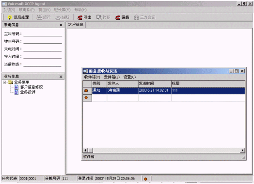 ·語音數(shù)據(jù)同步:當(dāng)呼叫在IVR和座席、座席和座席之間進(jìn)行互轉(zhuǎn)的時(shí)候,業(yè)務(wù)信息可以同時(shí)被傳送到目的設(shè)備上去,如用戶在IVR上的按鍵,或用戶帳號(hào)之類信息。這樣話務(wù)員在接到電話時(shí),座席軟件馬上就可以在數(shù)據(jù)庫取到相應(yīng)客戶信息,話務(wù)員無需重復(fù)詢問對(duì)方信息,可以立即進(jìn)行服務(wù),大大提高工作效率,增加服務(wù)親和力
