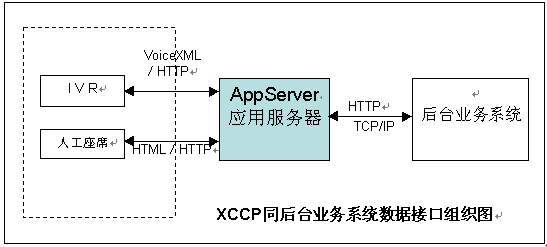 可以看出AppServer應(yīng)用服務(wù)器是外部系統(tǒng)同XCCP呼叫中心系統(tǒng)接口的核心模塊,由于XCCP采用開放協(xié)議和標(biāo)準(zhǔn),應(yīng)用服務(wù)器實(shí)際就是一個(gè)Web服務(wù)器,因此同后臺(tái)業(yè)務(wù)系統(tǒng)接口技術(shù)不受XCCP系統(tǒng)的限制,只要Web服務(wù)器能支持通信技術(shù)在這里都全面支持,下面都分別進(jìn)行舉例說明;如果有些通信技術(shù)在下面描述中沒有涉及到的,但是Web技術(shù)支持的,應(yīng)用服務(wù)器都支持。