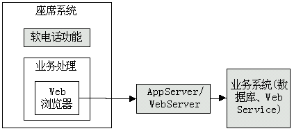呼叫中心系統(tǒng)同業(yè)務(wù)有關(guān)系的主要是IVR服務(wù)器和Agent人工座席兩部分,他們都是通過AppServer應(yīng)用服務(wù)器同后臺(tái)業(yè)務(wù)系統(tǒng)進(jìn)行互聯(lián);IVR服務(wù)器和人工座席都是采用瀏覽器模式,他們的業(yè)務(wù)邏輯都是通過應(yīng)用服務(wù)器上的Web服務(wù)器進(jìn)行的,IVR的VoiceXML頁面和人工座席的HTML頁面都是通過AppServer上的Web服務(wù)器靜態(tài)或動(dòng)態(tài)產(chǎn)生的,他們同AppServer的通信都是通過HTTP協(xié)議進(jìn)行的。