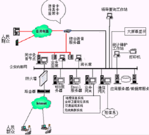 包括智能接警調(diào)度平臺,警用GIS地理信息系統(tǒng)/交通監(jiān)視系統(tǒng)/GPS全球衛(wèi)星定位系統(tǒng)/無線集群系統(tǒng),數(shù)字錄音系統(tǒng),圖象監(jiān)控系統(tǒng)和大屏幕顯示系統(tǒng)等。