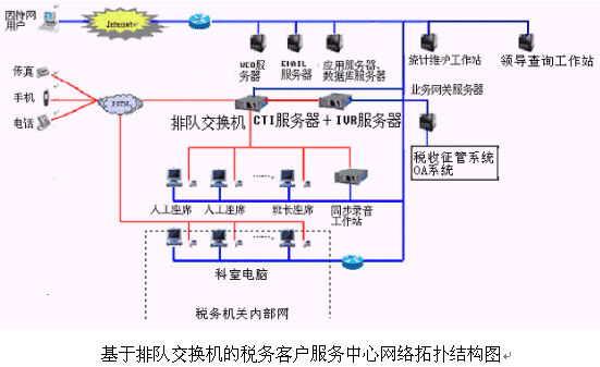 對于20個以下人工座席的中小型稅務客戶服務中心系統(tǒng),則建議使用基于計算機語音板卡的方式,可以減少投資,同時具有良好的系統(tǒng)性能;對于大型的稅務客戶服務中心系統(tǒng),可選用排隊交換機作為語音接入設備,以保障系統(tǒng)的高可靠性和穩(wěn)定性;大大提高了系統(tǒng)的適應面。