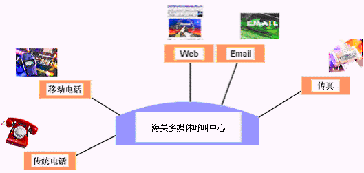 海關(guān)多媒體呼叫中心系統(tǒng)對(duì)外面向用戶,對(duì)內(nèi)與整個(gè)海關(guān)相聯(lián)系,與海關(guān)管理、服務(wù)結(jié)為一體,能夠把從用戶那里獲得的各種信息、數(shù)據(jù)全部貯存在龐大的數(shù)據(jù)倉庫中,供領(lǐng)導(dǎo)者作分析和決策之用;形成了對(duì)外服務(wù)于客戶,對(duì)內(nèi)管理、分析、決策系統(tǒng)相結(jié)合的多媒體呼叫中心。