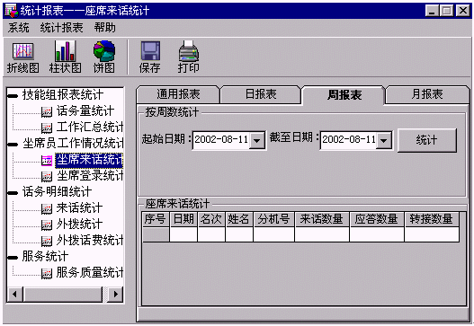 ·座席員來(lái)話統(tǒng)計(jì):按座席員統(tǒng)計(jì)來(lái)話情況。
