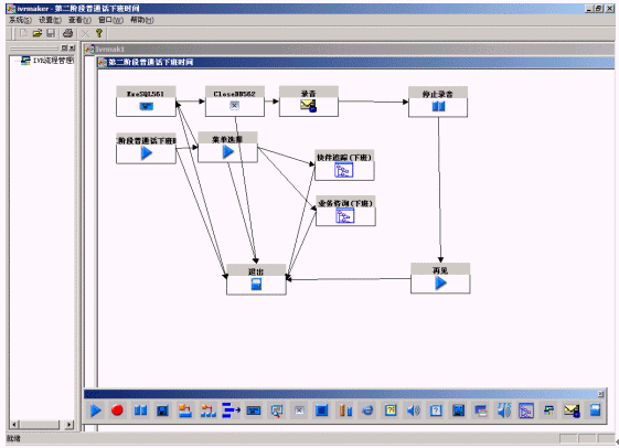 系統(tǒng)提供圖形化的語(yǔ)音流程生成環(huán)境,以方便用戶對(duì)語(yǔ)音流層進(jìn)行定制。流程生成器是一套可視化的流程設(shè)計(jì)工具,通過(guò)拖拉圖標(biāo)控件、鼠標(biāo)連線即實(shí)現(xiàn)呼叫中心CTI流程的制作,同時(shí),通過(guò)運(yùn)行時(shí)鏈接動(dòng)態(tài)連接庫(kù)(DLL),實(shí)現(xiàn)對(duì)業(yè)務(wù)數(shù)據(jù)庫(kù)的訪問(wèn);通過(guò)運(yùn)行時(shí)鏈接用戶DLL,最靈活地與用戶應(yīng)用系統(tǒng)結(jié)合;支持多種業(yè)務(wù)集成和動(dòng)態(tài)流程控制,方便用戶拓展業(yè)務(wù);采用事件驅(qū)動(dòng)機(jī)制、開(kāi)放的結(jié)構(gòu),滿足各種語(yǔ)音系統(tǒng)的需要;支持不限個(gè)數(shù)、級(jí)數(shù)的IVR結(jié)構(gòu),可滿足用戶非常復(fù)雜的需求。