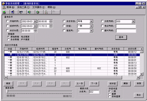 對(duì)查詢出來(lái)的聲音文件,可以選定一個(gè)或多個(gè)通過(guò)電話或聲卡播放。
