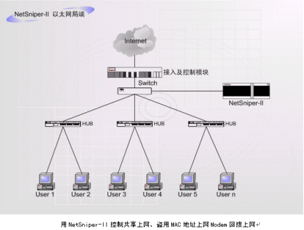 使用NetSniper-II可以有效的控制共享上網(wǎng)、盜用MAC地址上網(wǎng)和Modem回?fù)苌暇W(wǎng)的情況。