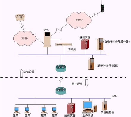 系統(tǒng)支持四種座席配置:PC+耳麥、PC+IP電話、PC+傳統(tǒng)電話、IP電話或傳統(tǒng)電話,其中座席采用PC+耳麥這種配置最容易擴展,只要有一臺多媒體電腦和一付耳麥連接到可管理的IP網(wǎng)絡即可增加一個座席。