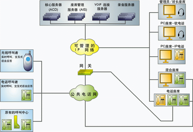 完全克服了傳統(tǒng)的客服中心對座席地理位置的約束,可以在多個地點(diǎn)設(shè)有座席和與電信公網(wǎng)的接入點(diǎn),座席分布在多個地點(diǎn)獨(dú)立運(yùn)營,但由一個中心點(diǎn)來控制和管理。