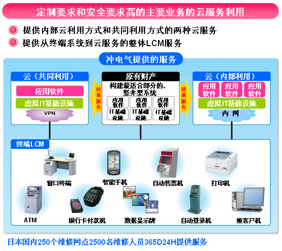 CTI論壇(ctiforum)12月9日消息(記者 楊佳林): 沖電氣開始銷售云計算服務(wù)(簡稱云服務(wù))—“EXaaS™”,以滿足客戶在任意時間以任意方式使用的需求。“EXaaS™”是整套的IT周期管理云服務(wù),包括系統(tǒng)引進咨詢、開發(fā)、采購和構(gòu)筑、運營支持。該服務(wù)超越了以往的云服務(wù),其服務(wù)范圍涵蓋了客戶端的終端機以及客戶網(wǎng)絡(luò)的所有部分,實現(xiàn)了客戶IT投資成本最優(yōu)化。