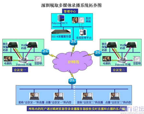 網(wǎng)絡(luò)內(nèi)的任意一臺(tái)計(jì)算機(jī)可通過IE瀏覽器直接登錄到管理中心的錄播服務(wù)器(需要管理員授權(quán)),可以接收實(shí)時(shí)的會(huì)議直播內(nèi)容,也可以對錄制好的文件進(jìn)行點(diǎn)播回放。
