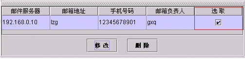 ·修改監(jiān)控郵箱配置時(shí),首先點(diǎn)擊'選取'項(xiàng)中的小方框,選中該列然后雙擊要修改項(xiàng)的內(nèi)容,修改完畢后按下Enter即回車(chē)鍵,再點(diǎn)擊修改按鈕