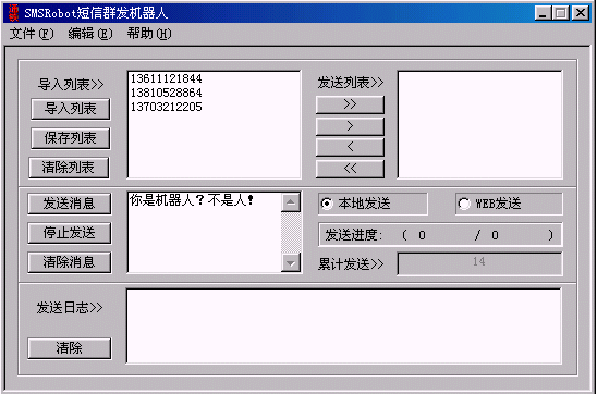 發(fā)送信息,待發(fā)送日志窗口中