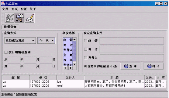 ·也可以通過(guò)給定查詢(xún)條件來(lái)查詢(xún)某項(xiàng)內(nèi)容,如針對(duì)某個(gè)郵箱、手機(jī)電話或發(fā)件人,方法是通過(guò)點(diǎn)擊左邊的小方框來(lái)選中,然后輸入相應(yīng)內(nèi)容即可,如下圖: